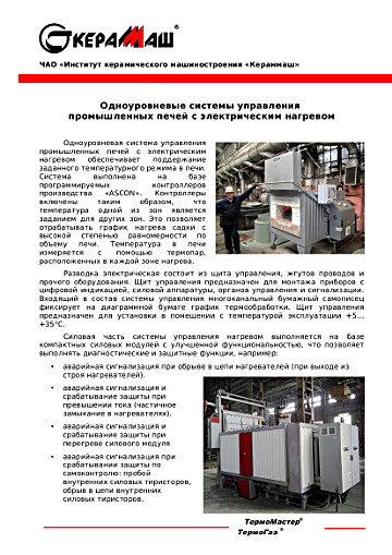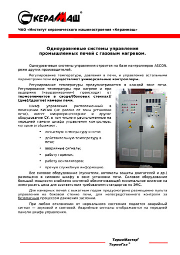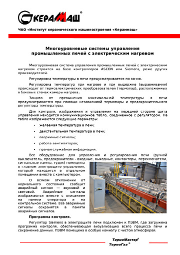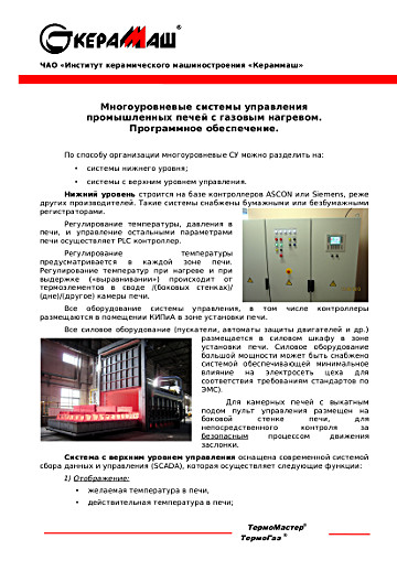 Все термические агрегаты, выпускаемые ЧАО Кераммаш, поставляются с комплектной системой управления,