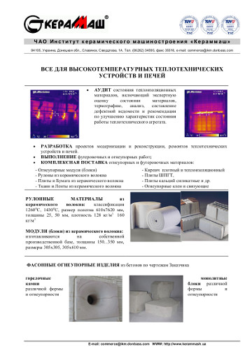 ВСЕ ДЛЯ ВЫСОКОТЕМПЕРАТУРНЫХ ТЕПЛОТЕХНИЧЕСКИХ УСТРОЙСТВ И ПЕЧЕЙ