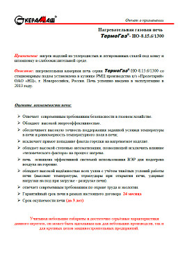 Печь введена в эксплуатацию в 2014 году и предназначена для термообработки