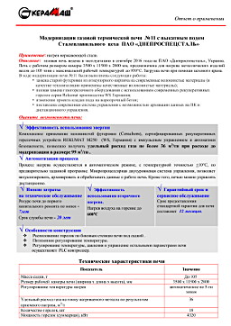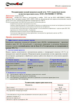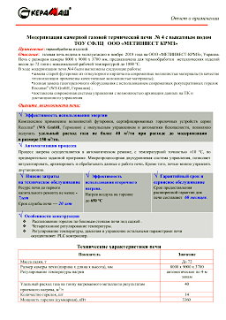газовая печь ведена в эксплуатацию в ноябре 2018 года на ООО «МЕТИНВЕСТ-КРМЗ», Украина.